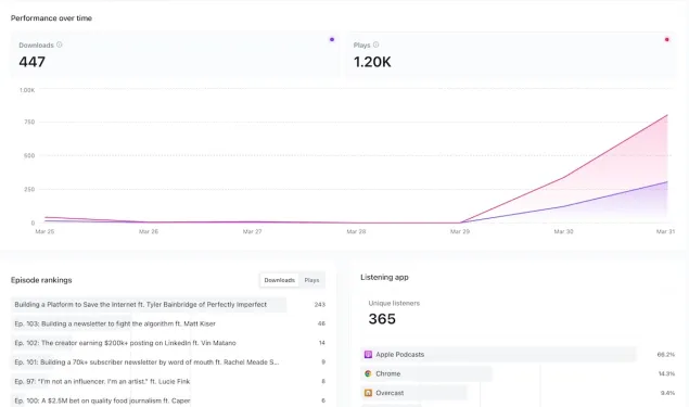 Podcast đang bùng nổ mạnh mẽ, và Beehiiv đặt cược rằng các công cụ mới của họ sẽ giúp nhà sáng tạo nổi bật trong không gian chật chội này. Sau khi bổ sung tính năng lưu trữ podcast gốc vào tháng trước (giúp 50% người dùng hiện tại chuyển đổi nền tảng thành công), Beehiiv tiếp tục tích hợp công cụ phân tích bằng AI.