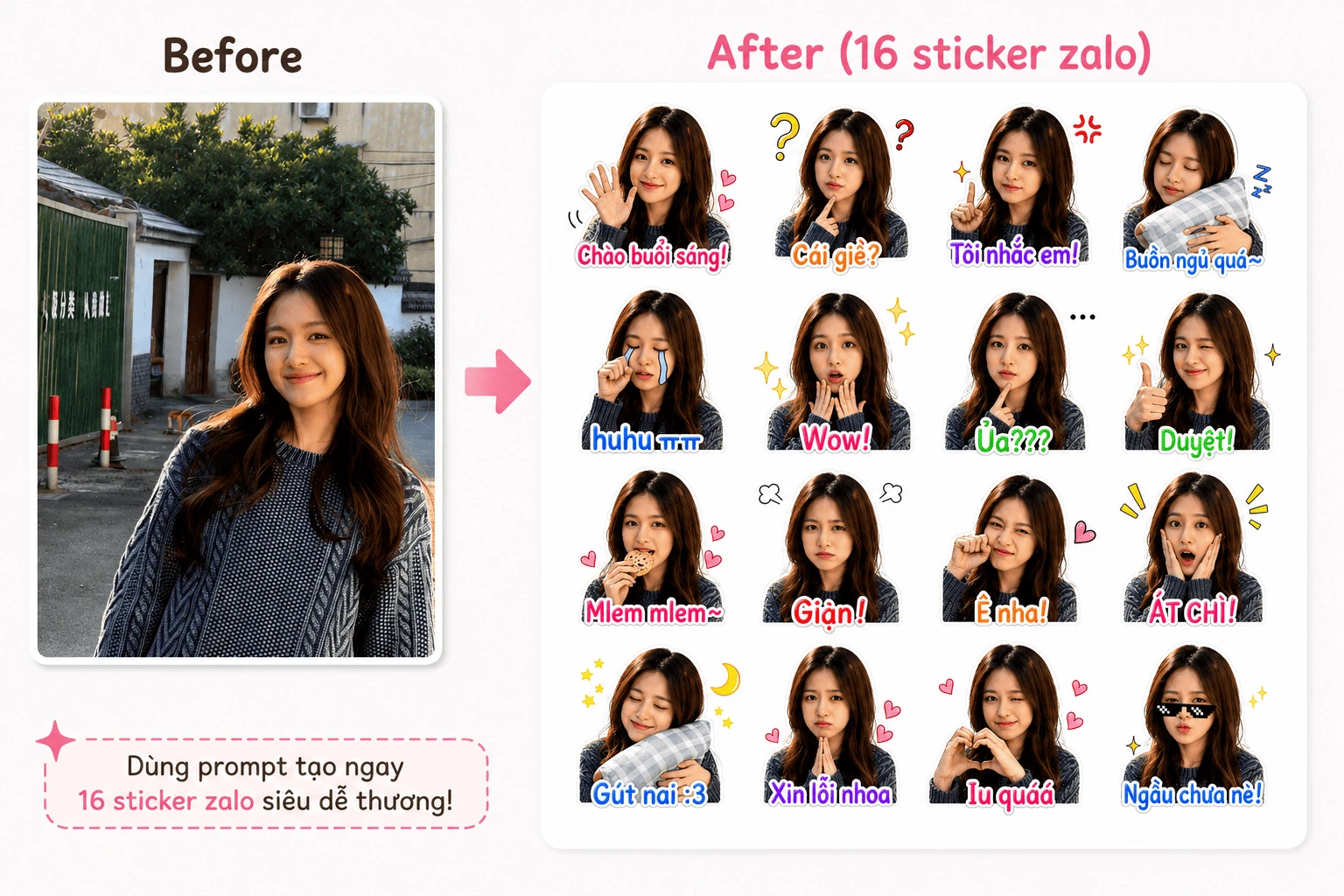 Hướng Dẫn Prompt Tạo Sticker Zalo Bằng AI "Độc Nhất Vô Nhị" (Full 16 Biểu Cảm)